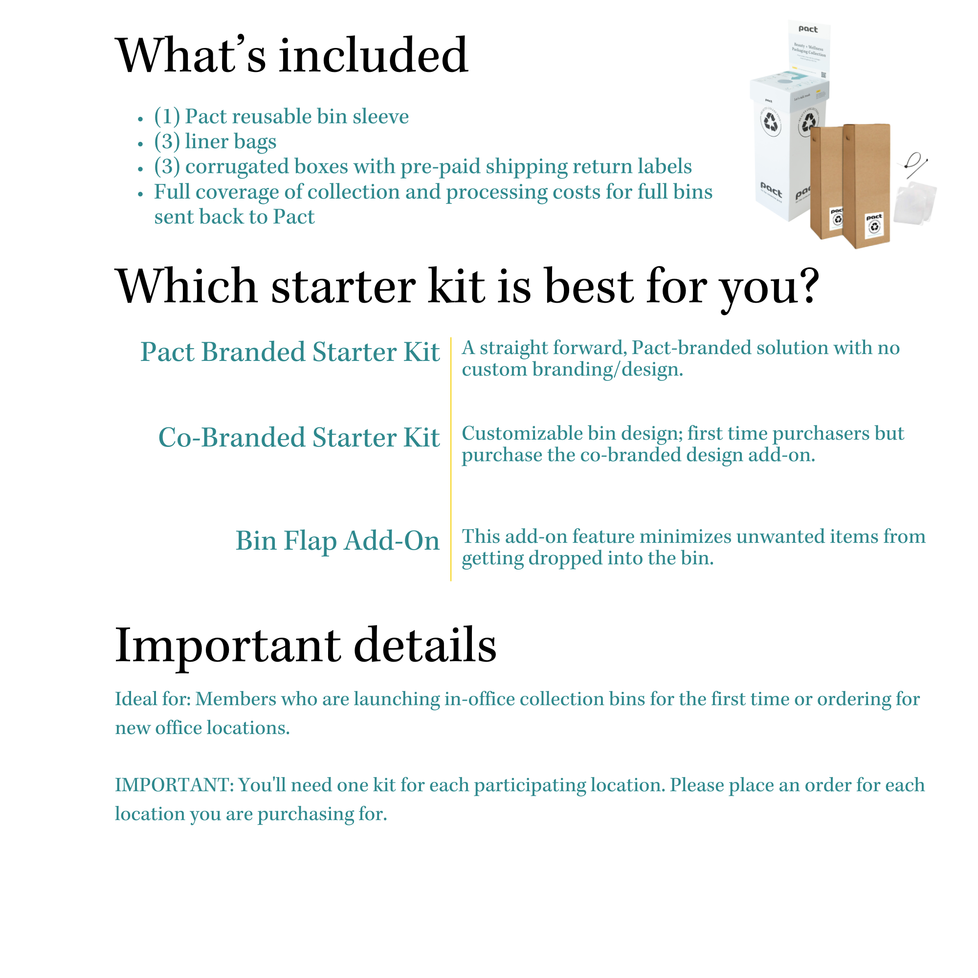 Back to Store In-Office Starter Kit In-Office Starter Kit Images × $750.00 - $800.00 Pact Branded Starter Kit - ($750.00) Pact Branded Starter Kit + Bin Flap - ($800.00) Co-Branded Starter Kit - ($750.00) Co-Branded Starter Kit + Bin Flap - ($800.00) Login to Add To Cart Added to cart × Powered By GrowthZone